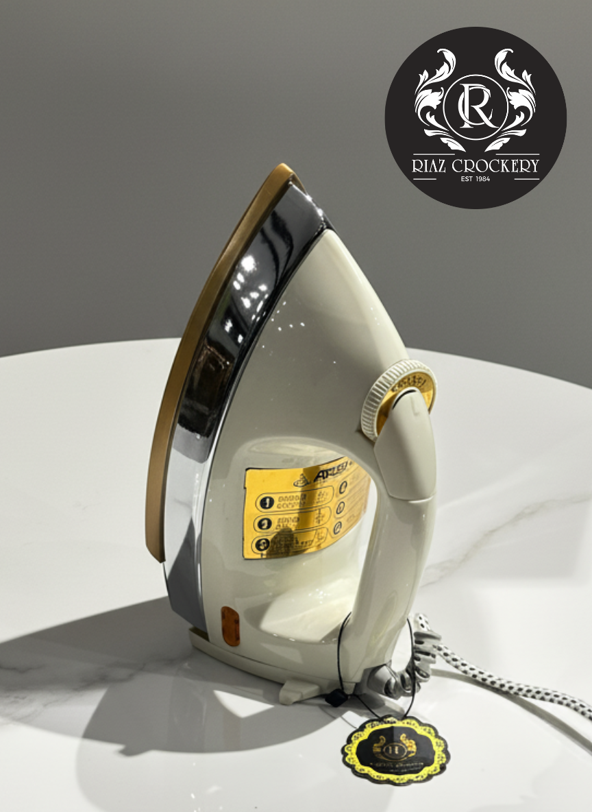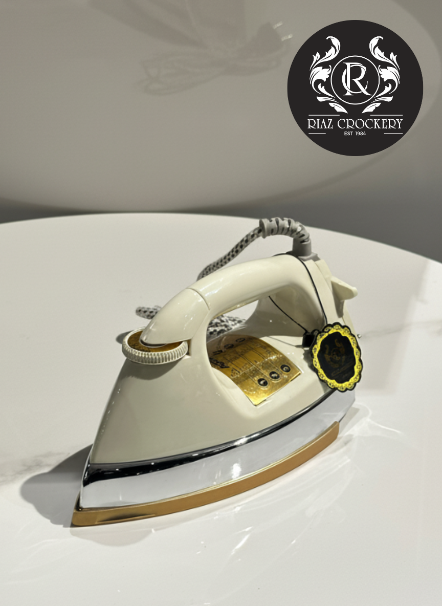 This classic ARSHIA Iron is great for making your clothes perfectly smooth and neat. With its warm beige and shiny gold trim, it looks elegant and works well to get rid of wrinkles. It's easy to use and helps you keep all your clothes looking sharp and tidy for any occasion.