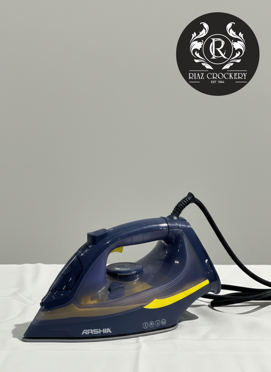This vibrant blue and yellow ARSHIA Steam Iron makes ironing clothes simple and effective. It uses steam and heat to quickly smooth out wrinkles, making your clothes look neat and crisp. The colorful design and easy-to-use features help you get your ironing done with ease, so you can always step out looking your best.