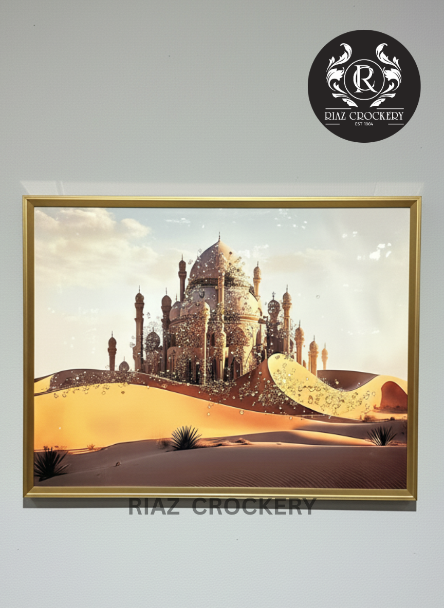 Transform your space with this breathtaking diamond wall frame, showcasing a magnificent golden palace rising majestically from desert dunes. The palace shimmers with countless sparkling "diamonds," and golden sand streams down the dunes, creating an illusion of magic and luxury. This unique piece captures a fantastical desert oasis, bringing an opulent and dreamy atmosphere to any room.