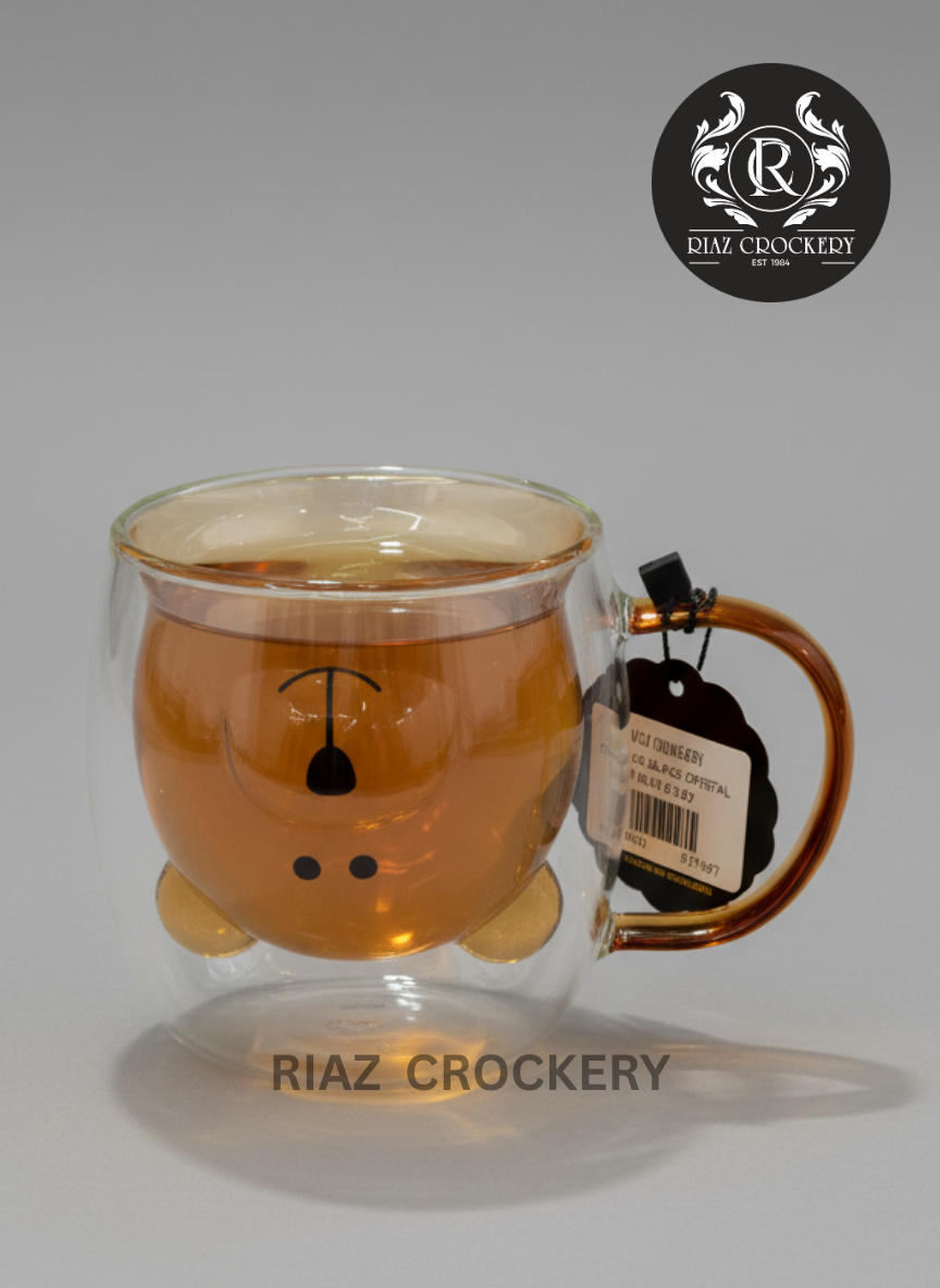 Say hello to your new favorite "Bear Hug" Double Glass Crystal Mug. This adorable mug features a charming bear face design that comes to life when you pour your drink in. Made with two layers of clear glass, it keeps your beverages wonderfully hot or perfectly cold, while staying comfortable to hold. The cute amber-colored handle adds a cozy touch. It's perfect for anyone who loves a bit of fun with their coffee, tea, or juice.