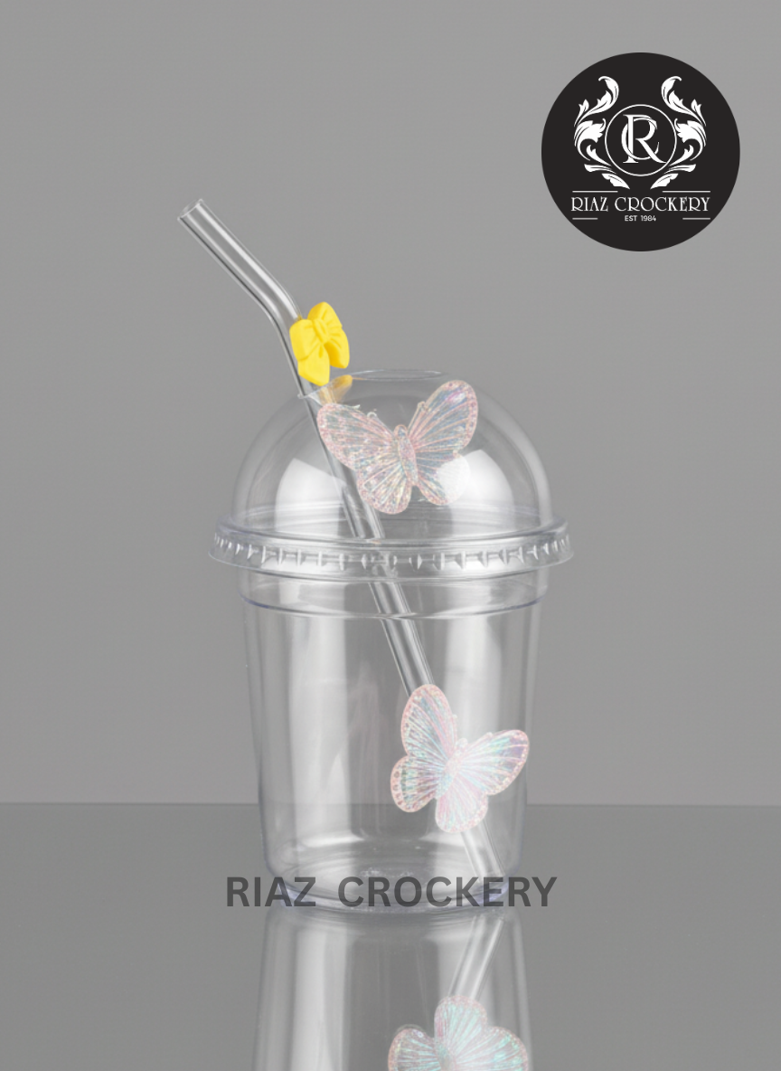Make every sip magical with this clear Echou Straw Mug. It features a fun dome lid and a clear straw, both decorated with pretty, shimmering butterfly designs. A cute yellow flower adds an extra pop of charm. Perfect for kids or anyone who loves a whimsical touch, it's great for smoothies, juices, or any cold drink.