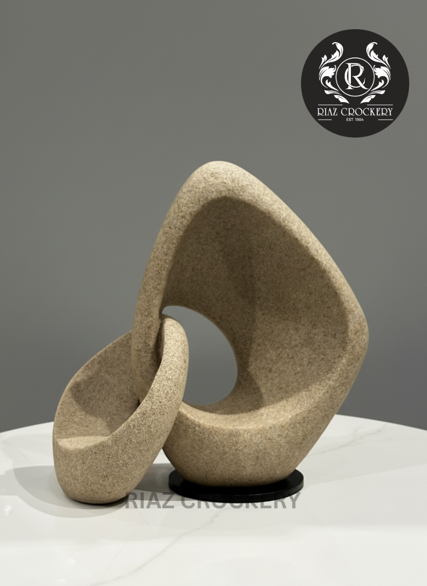 Make your home look artsy and cool with our special Chain Decoration. It's a modern statue with two smooth shapes linked together, feeling like soft sand. It sits on a simple black stand. This pretty piece makes any room feel calm and stylish.