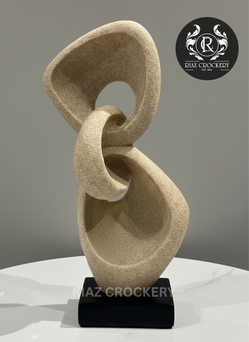 Add a modern and artistic touch to your home with our unique Fiber Chain Decoration. This sculpture features two smooth, linked shapes in a natural, sandy texture, all standing elegantly on a sleek black base. It's a stylish and abstract piece that brings a calm, artistic feel to any room.