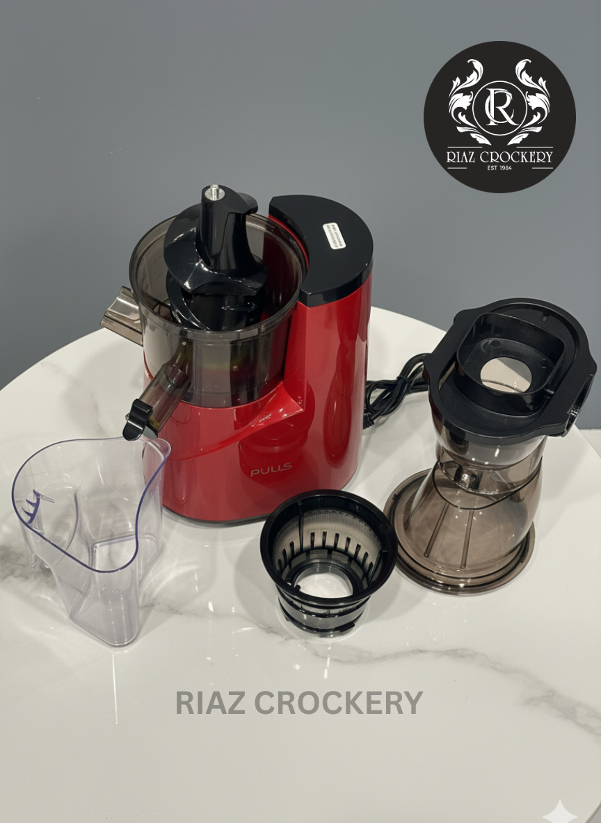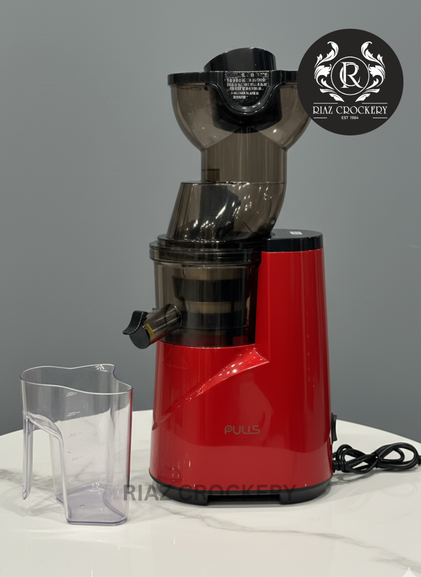 This bright red FULIS Slow Juicer makes super healthy and tasty juice from fruits and veggies. Unlike fast juicers, it slowly squeezes out the juice, so you get more vitamins and flavor. It's great for making fresh, nutritious drinks like green juice or fruit juice. Enjoy a healthier you with every glass.