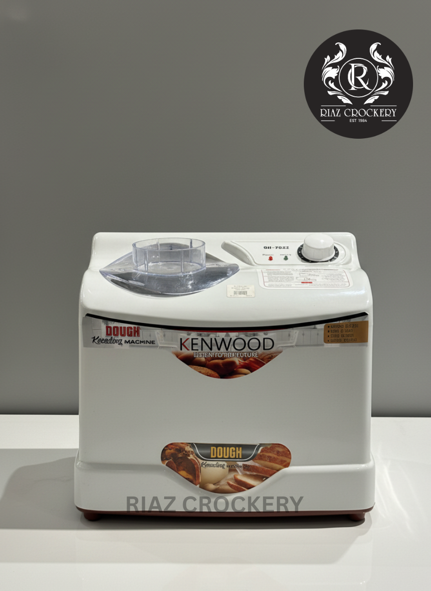 This is a reliable Kenwood Dough Machine, designed to simplify the process of making dough for all your baking needs. It features a clean white body and includes a durable stainless steel pot for mixing. With easy-to-use controls, this machine is a practical addition to any kitchen, effortlessly preparing dough for bread, chapatis, and more.
