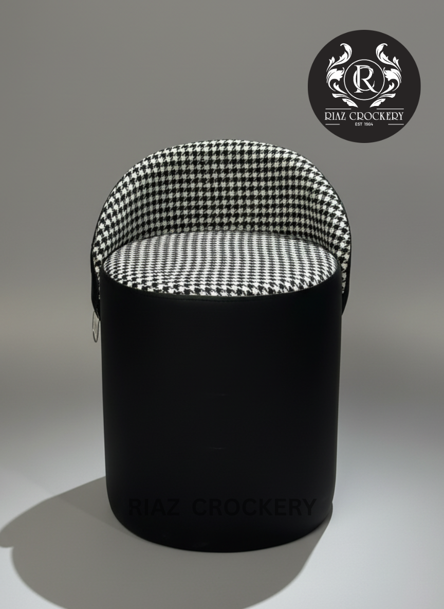 This elegant stool is your perfect vanity companion. With its comfortable backrest and seat featuring a classic black and white houndstooth pattern, it provides a stylish and cozy spot. Its sleek black base adds a modern touch, making it ideal for sitting comfortably while you get ready at your mirror.