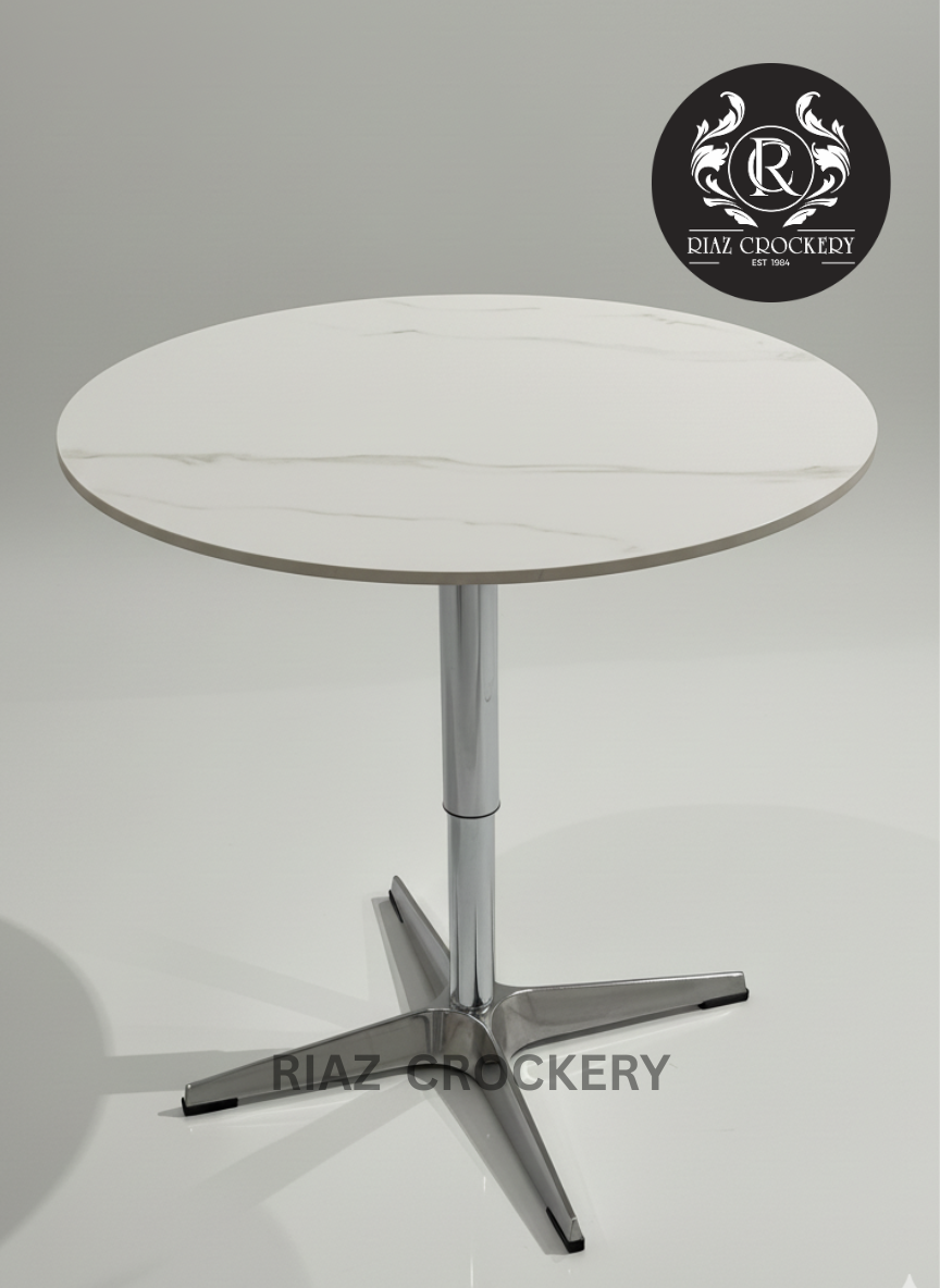 This is a super practical and smart table that you can easily pick up and move anywhere you need it. It has a bright white top that looks like fancy marble, and it sits on a shining silver stand with a steady base. Because it's so easy to move, it's perfect for quickly setting up a spot for snacks, drinks, or your laptop, then putting it away when you're done. You can also change its height to make it tall for standing or shorter for sitting. It looks modern and is incredibly handy for flexible living.