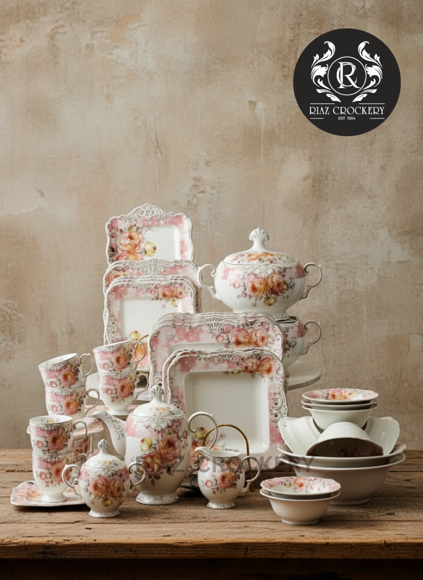 The NORITACE COLOUR DINNER SET is a charming 61-piece collection, elegantly designed to serve eight persons. Crafted from durable ceramics, this set features a beautiful and vibrant floral pattern, predominantly in shades of pink and green, giving it a lively and inviting aesthetic. With its comprehensive array of dinnerware and serving pieces, it's perfect for adding a touch of color and sophistication to any dining experience. Please note that this exquisite set is not safe for microwave use, ensuring the preservation of its delicate design and quality.