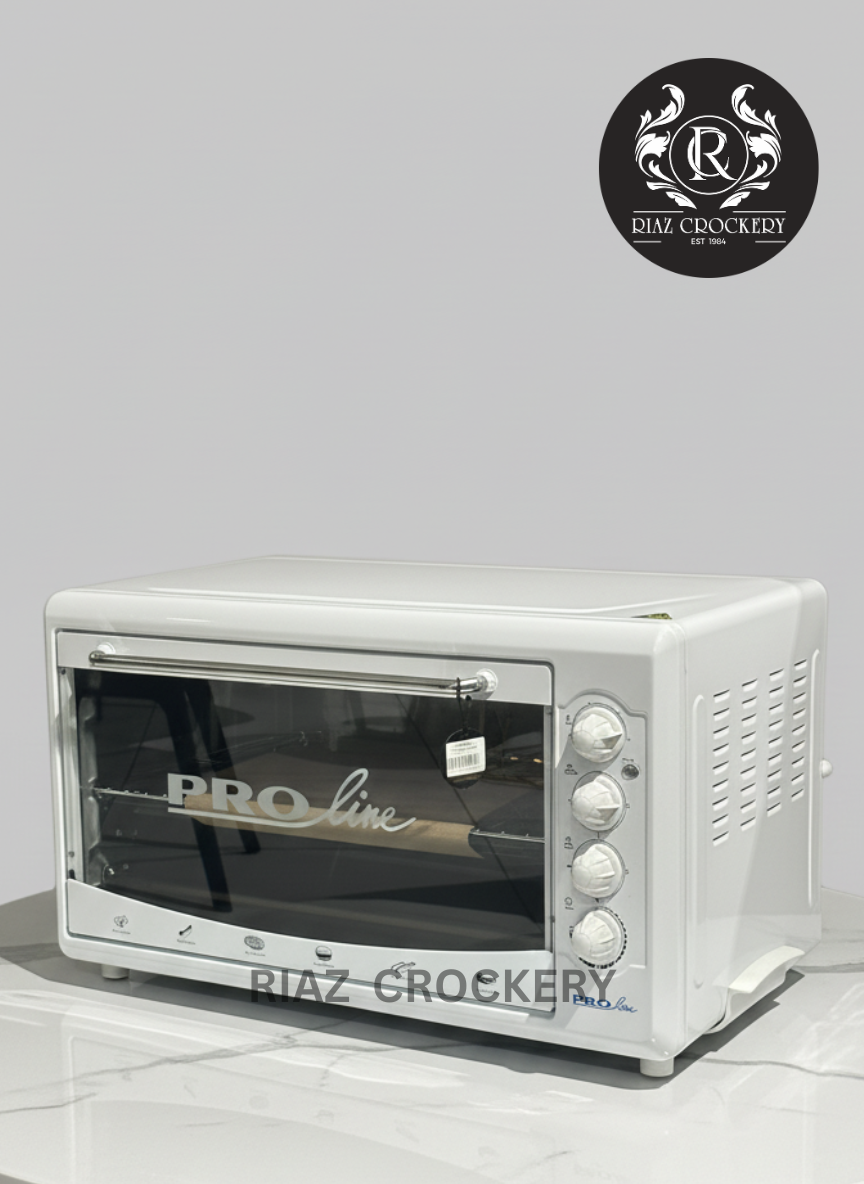 This is a large Pro Line Jumbo Oven, featuring a classic white design that would fit well in many kitchens. It's a versatile appliance for baking, roasting, and grilling.