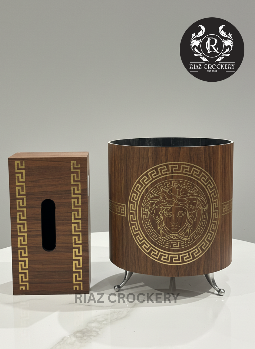 Two-Piece Set: Comes with a tissue box and a trash can.