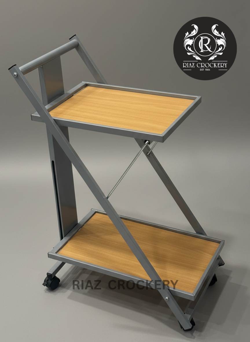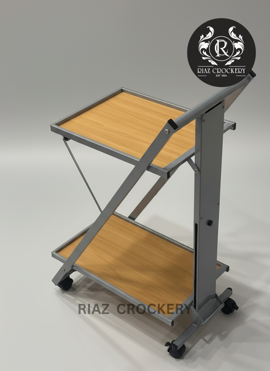 Meet your clever new helper for serving drinks and snacks! This tea trolley is super handy because it folds away flat when you're not using it. With two sturdy shelves and smooth-rolling wheels, it makes serving guests or moving items around your home easy and stylish.