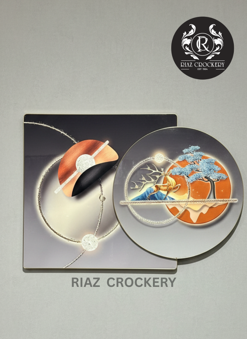 Add a touch of abstract wonder to your walls with this unique 2-in-1 wall frame. It combines a rectangular piece with glowing circles and a vibrant abstract shape, layered with a circular frame featuring a stylized blue tree, a graceful deer, and warm, earthy tones. The interplay of light, shadow, and symbolic elements creates a captivating and modern art piece.