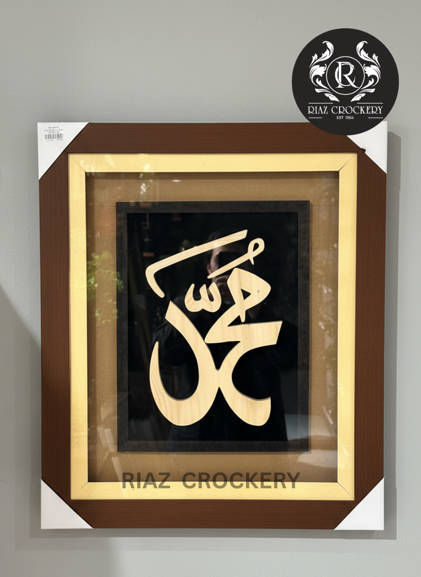 Bold "Muhammad" Calligraphy: The central word stands out clearly in a light wood tone.